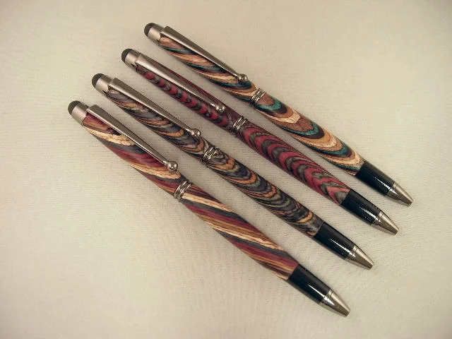 Dennis and Laura have been designing and handcrafting for years, each in their own element...Dennis in woodworking and Laura in needlework. In addition to knitting and sewing, Laura decided to partner with Dennis in the woodworking arena. They started creating beautiful pens and pencils from exotic woods and acrylics. They added letter openers, key chains and stylus products to their repertoire, and progressed to unique pepper & salt mills, candlesticks, wine bottle stoppers, vases, bowls, collapsible baskets, cutting boards and much more.