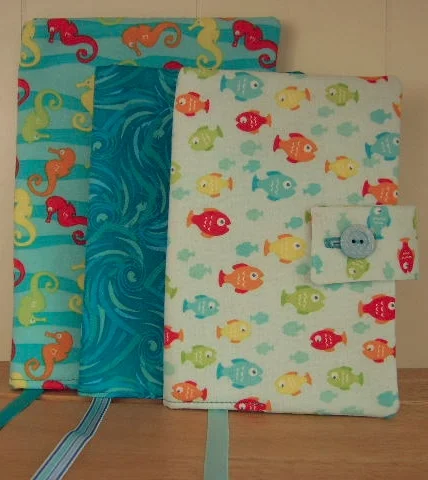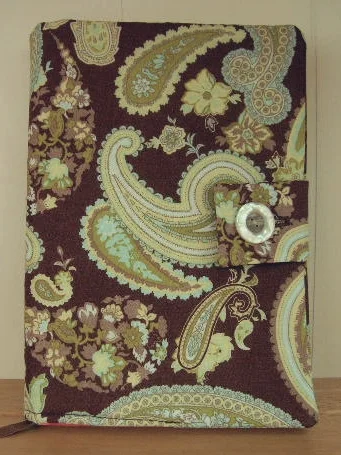 Our book covers are designed and handcrafted with 100% cotton fabric. Each book cover features a coordinating lining, ribbon and button closure. Book cover sizes include small (fits mass market paperback books), medium (fits trade size books), and large (fits most hardcover books).