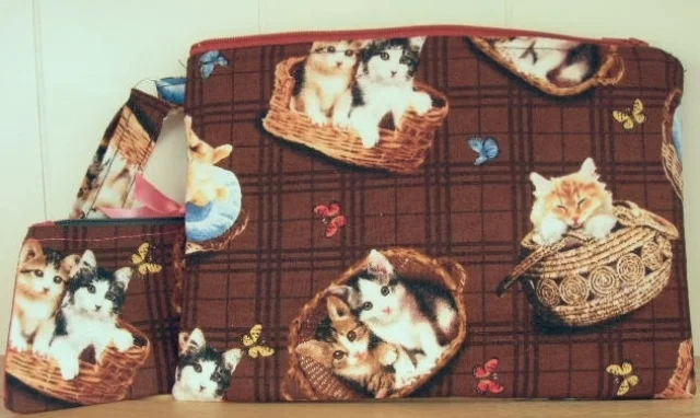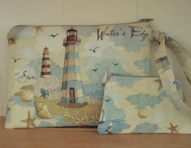 Each phone case/wristlet features a coordinating lining with an inside pocket and zipper closure. Matching change purses are available. Wristlet sizes include small, medium and large. Sunglass/eyeglass cases and totes feature coordinating linings as well.